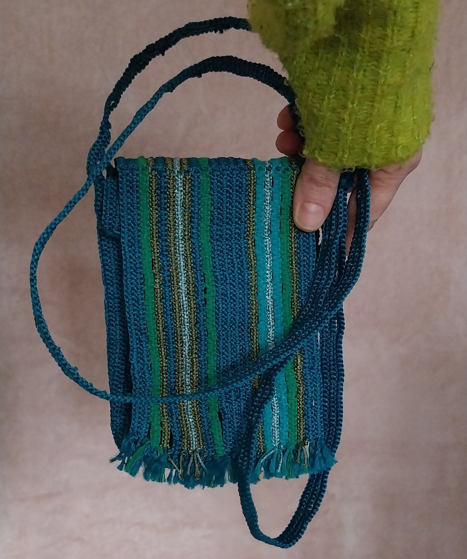 Vzor v odtieňoch hlbokej modrej, tyrkysu a striebristých línií evokuje odraz mestských svetiel na hladine jazera. Taška, ktorá v sebe nesie pokoj, hĺbku a kúsok tajomstva.
